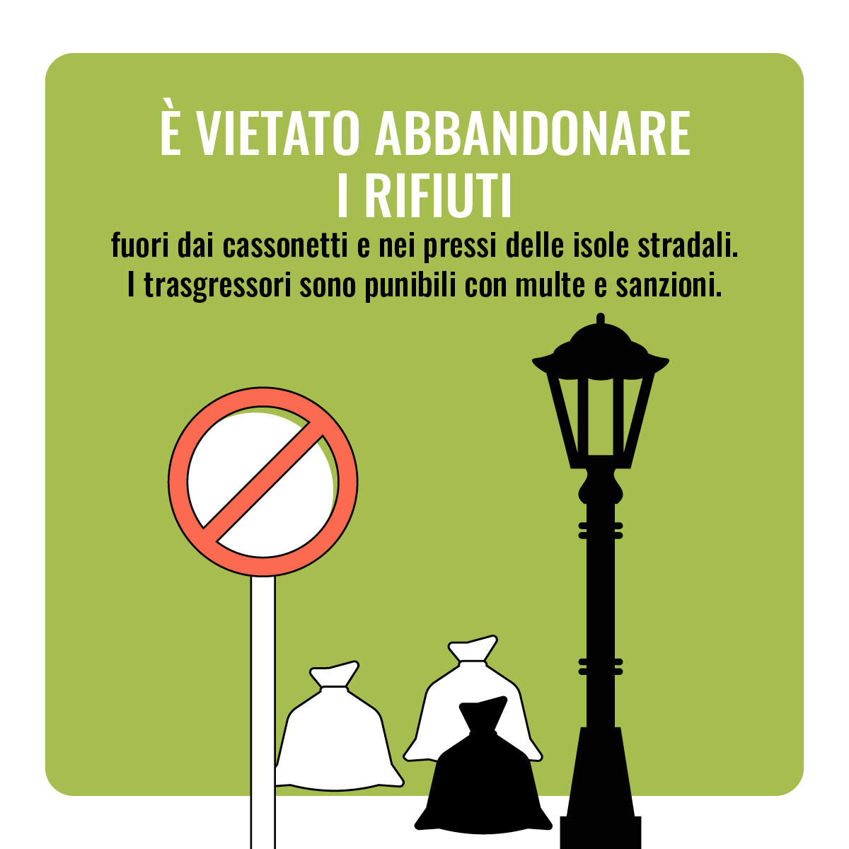 Con l'attivazione dei contenitori ad accesso controllato, ricordiamo che è severamente vietato lasciare sacchi o materiali a terra fuori dai cassonetti. Gli abbandoni degradano il nostro territorio e i trasgressori sono punibili con sanzioni.